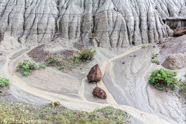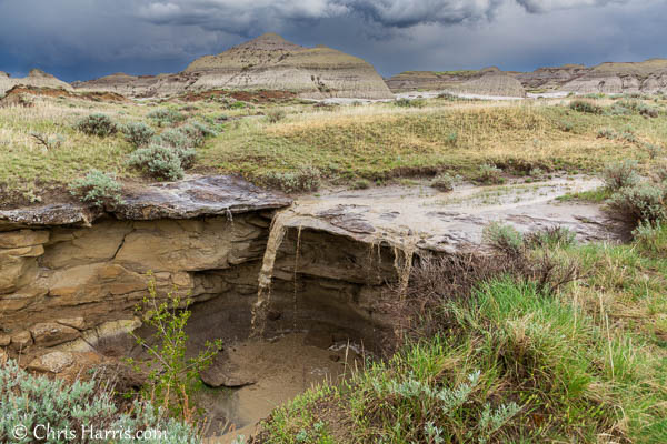 After a 5-minute rain squall in Dinosaur Provincial Park, evidence of flash flooding appeared almost instantly.