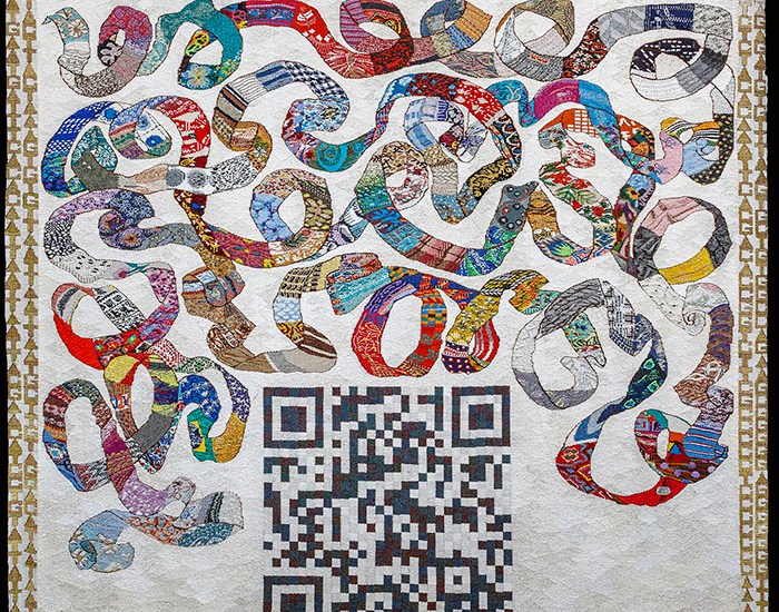 I have this tapestry on my desktop, where I visit it frequently for inspiration and knowledge. When you visit this website, The Fabric of our Lives, you will find there are 4-orange circles within the tapestry; click on them and they will give access to stories within the tapestry. Also, Lorna’s genius was to create a readable QR code within the tapestry; scan it and you will find her project. It is ground-breaking and inspiring.