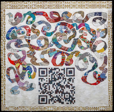 Lorna, who lives in Dublin, Ireland, was my sister Jane O’Malley’s archivist for decades; I have known her that long. During that time, she has been an art student, has taught art, and most recently, has graduated with a degree in Cell and Molecular Biology. The tapestry, which I share with you below, and which I encourage you to read and appreciate, bridges these two worlds of art and science.